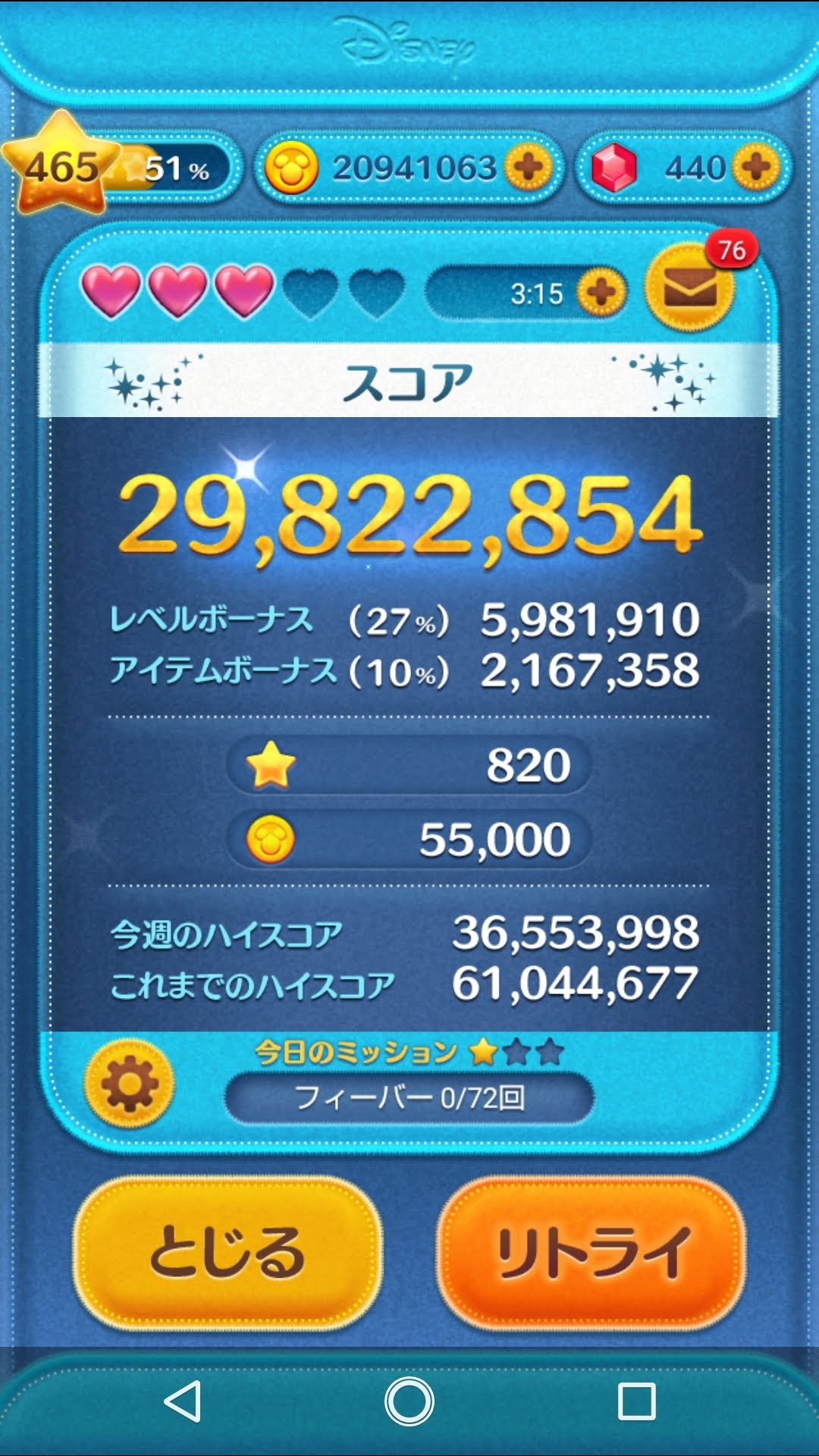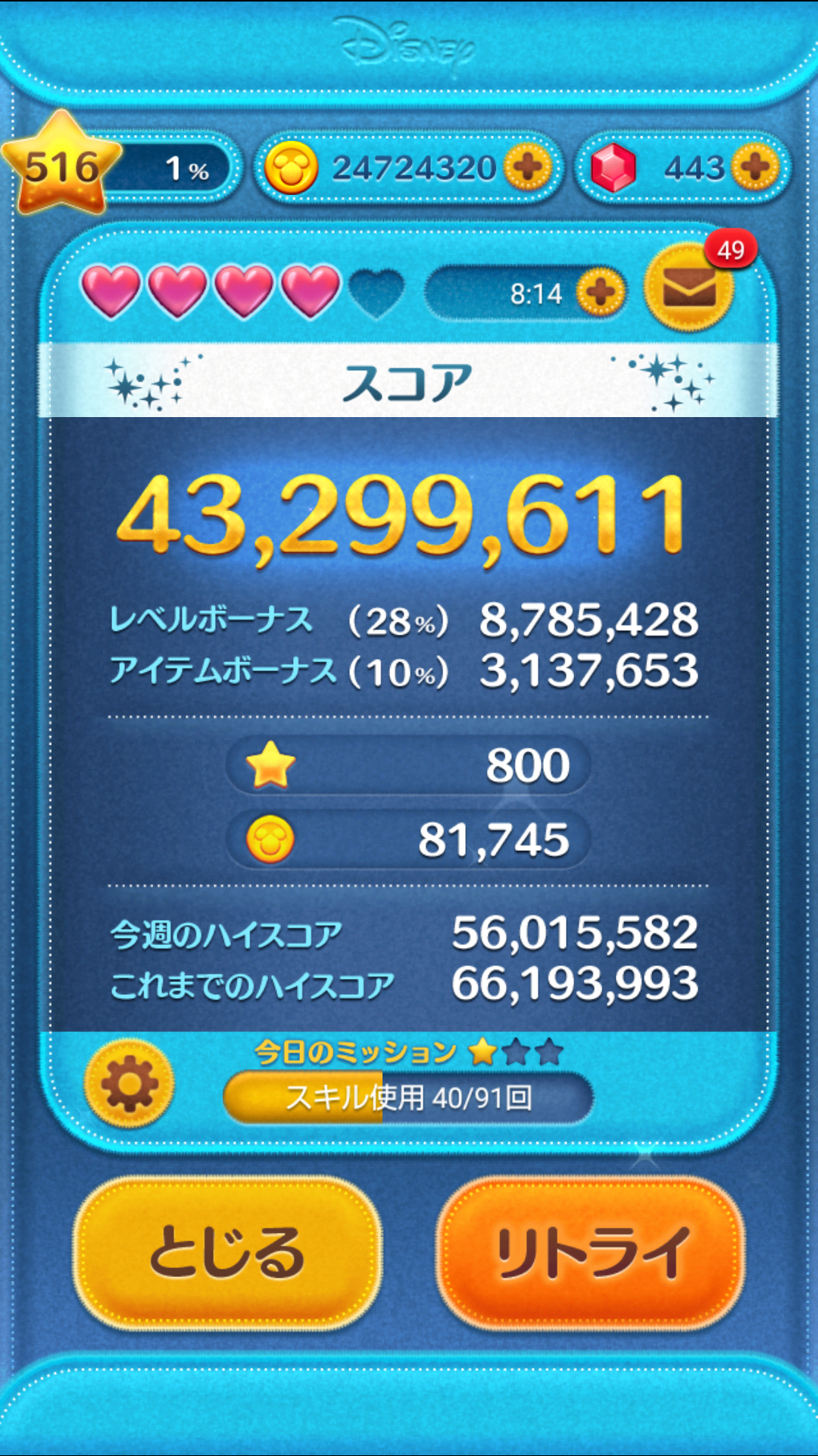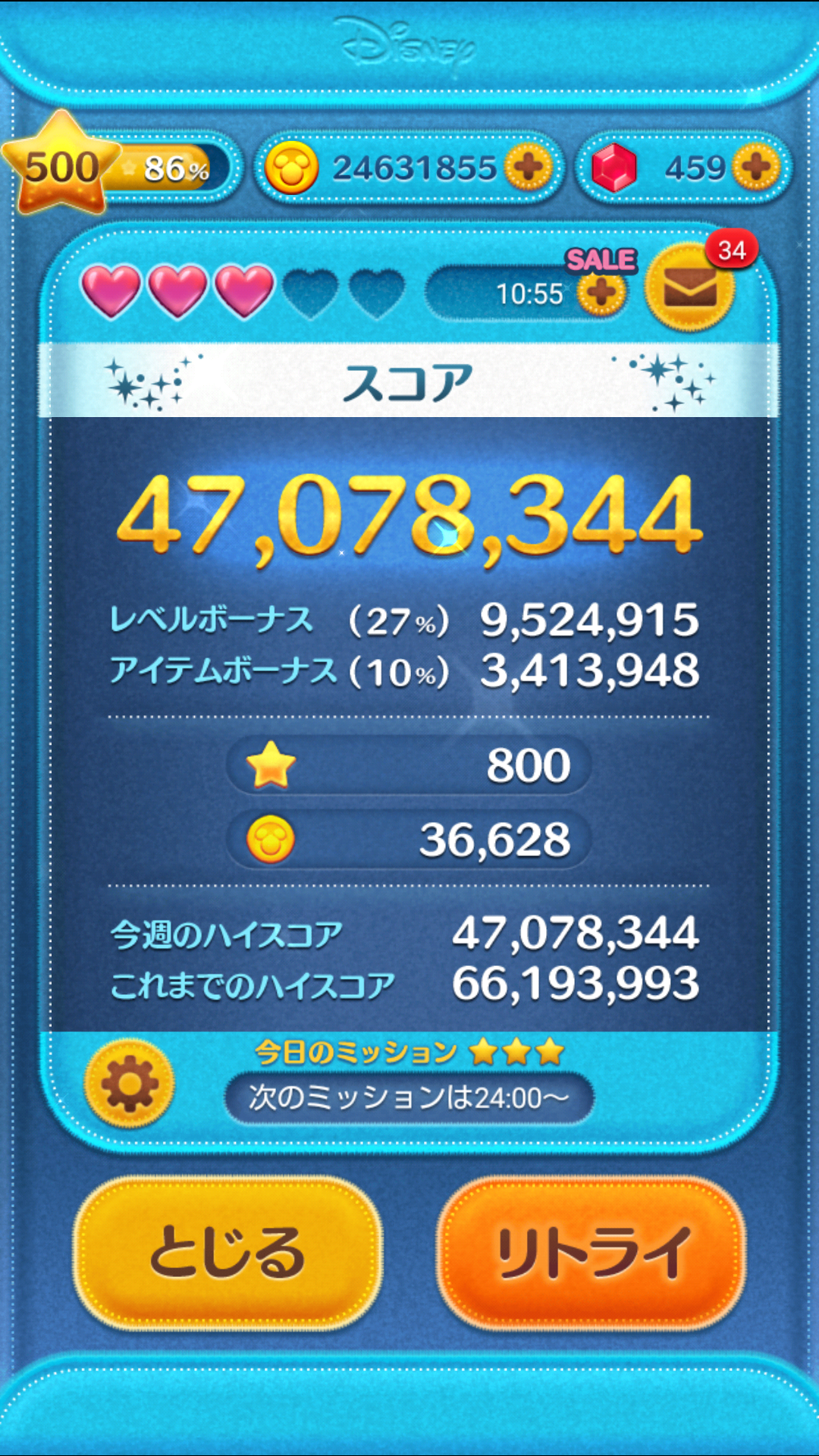 でね、やっとこさ気付いたんだけどね、、、結局のところこのツムツムってコインを稼ぐだけのゲームなんだよ。いかに効率よく集めるか。わたくしの場合もちろん無課金でコンプリートしてるのです。
