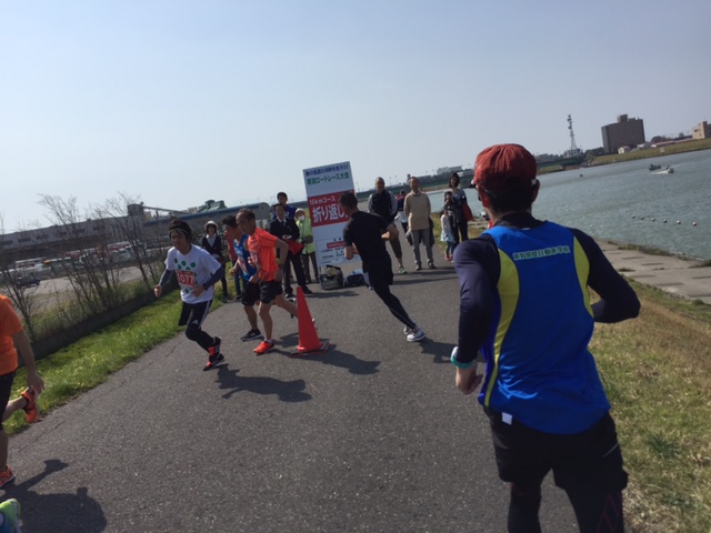 その後、やすらぎ堤脇の道路を2キロくらい走るとようやくばらけて走りやすくなる。