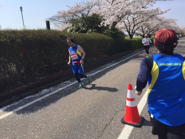 のこり3キロくらいで、渡辺総務部長とすれちがう。