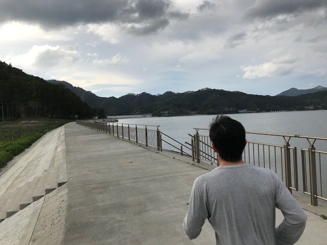 宿泊する宿に到着後は、野沢指導員とランニングがてら新しくできた防波堤の上を走ります。