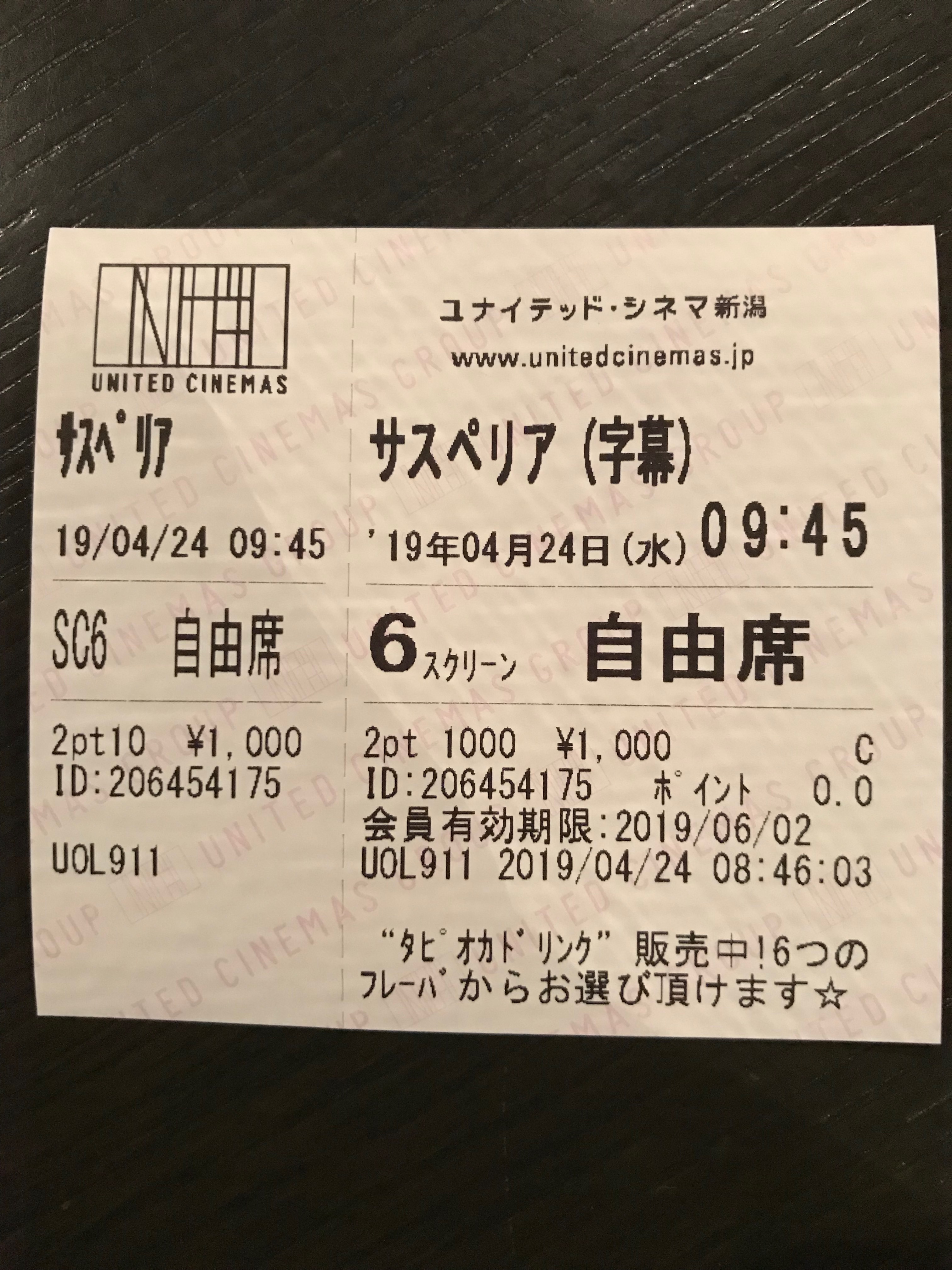 で、本題です。『サスぺリア』を観て来ました、ひとりで!