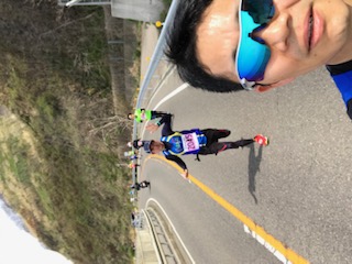 なんとか登りきり、下りで抜き返すも、このオーバーペースが足へダメージを生む。