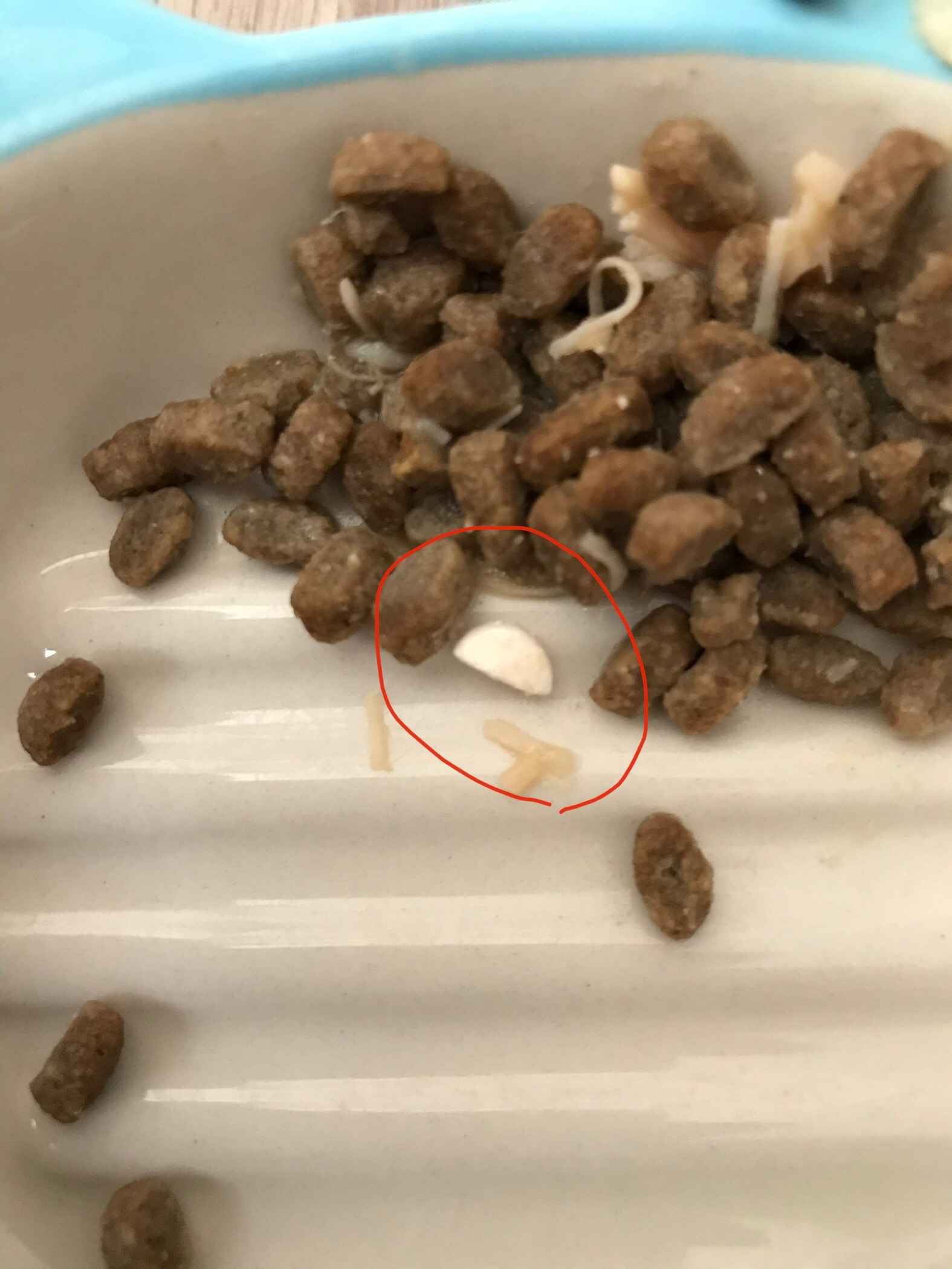 因みに、写真(上)の状態の時、細かく砕いて混ぜたら、全く口をつけなくなり、