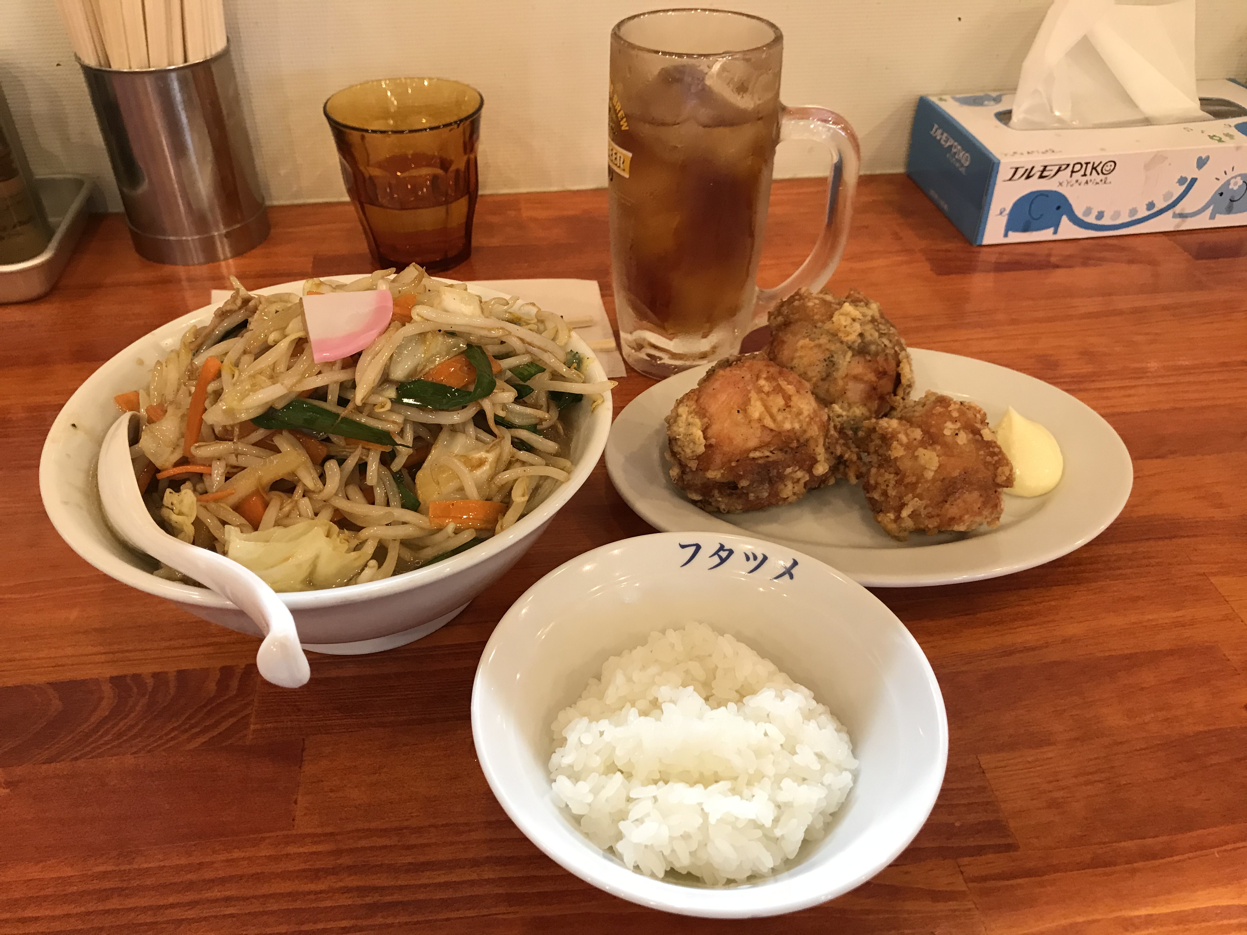『塩タンメン 唐揚げセット』(クーポン使用でウーロン茶サービス)