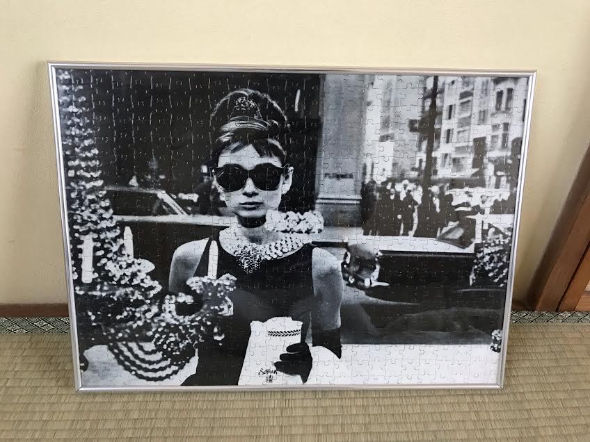 ティファニーの前でウインドウ越しに宝飾品を見ながら