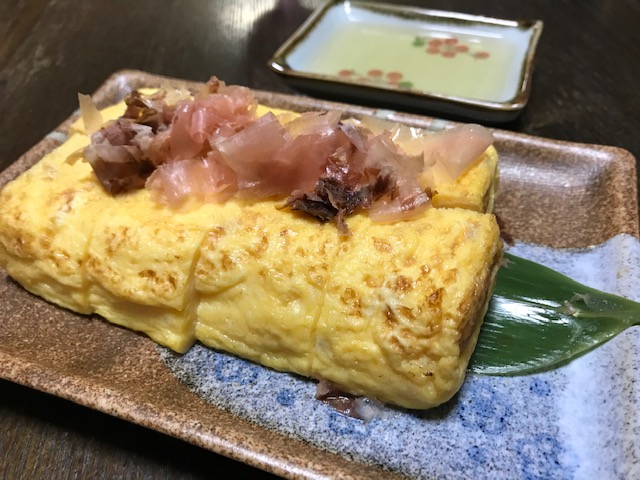 ここの玉子焼きは付属している出汁をつけて食べるスタイル。これまた美味でした。