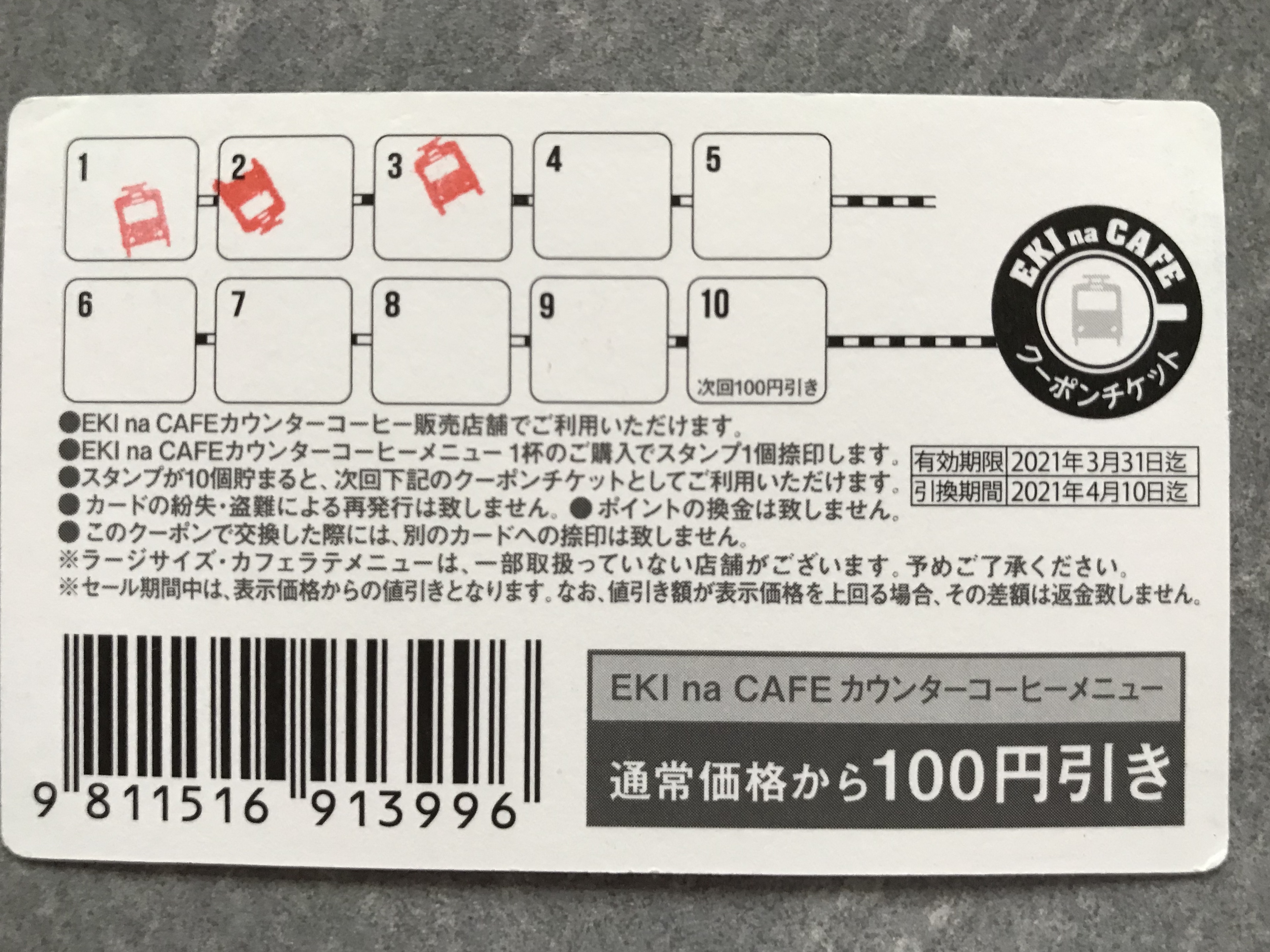 1杯につき1個押印 10個でレギュラーサイズ1杯無料!