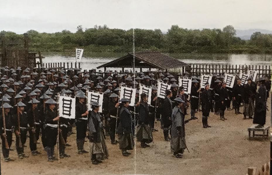 上の写真右端、台の上に立っている人が、『河井継之助』演じる役所広司さん