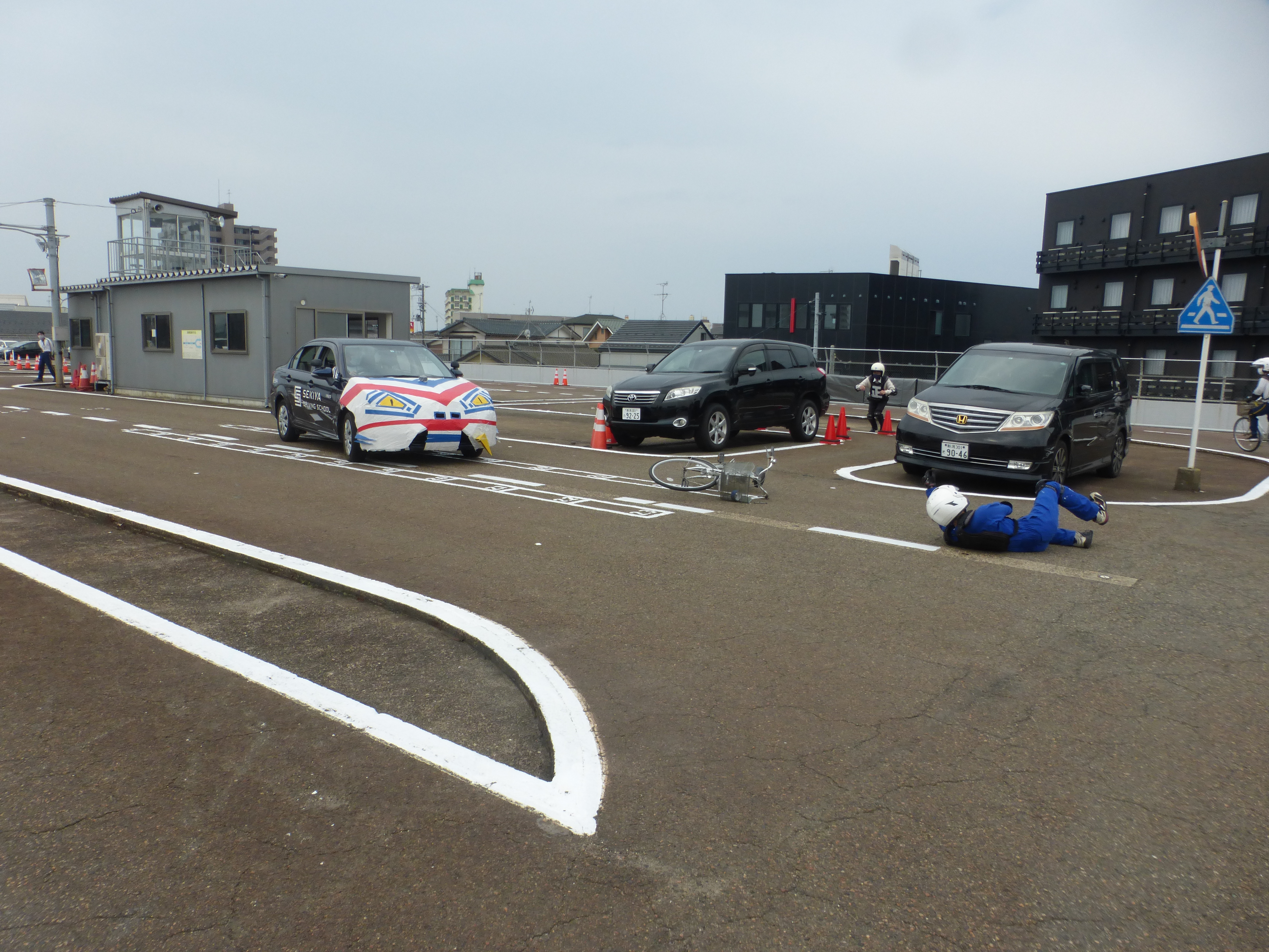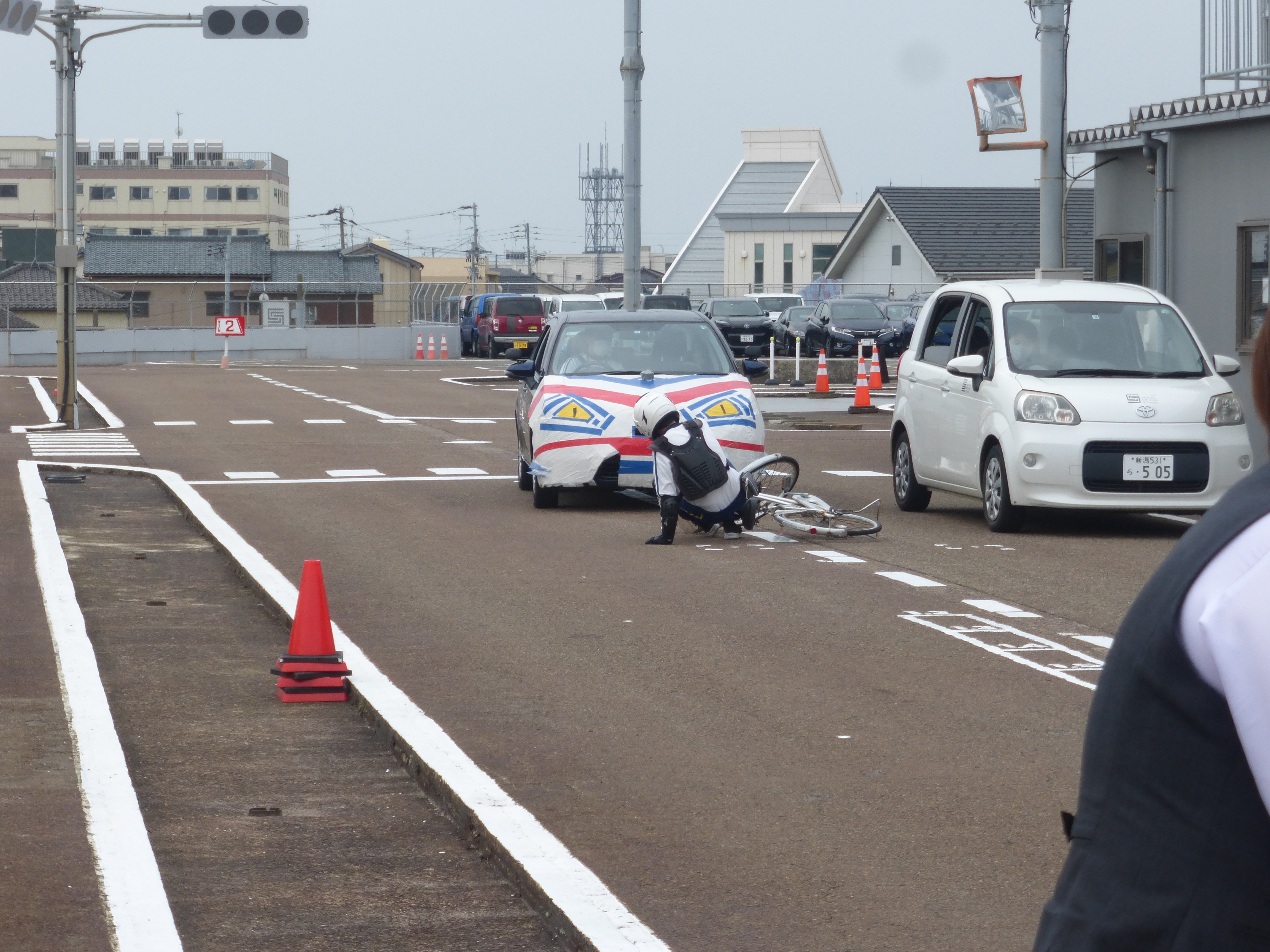 デモンストレーションでは指導員が迫真の演技で事故になりやすい状況を見せ、