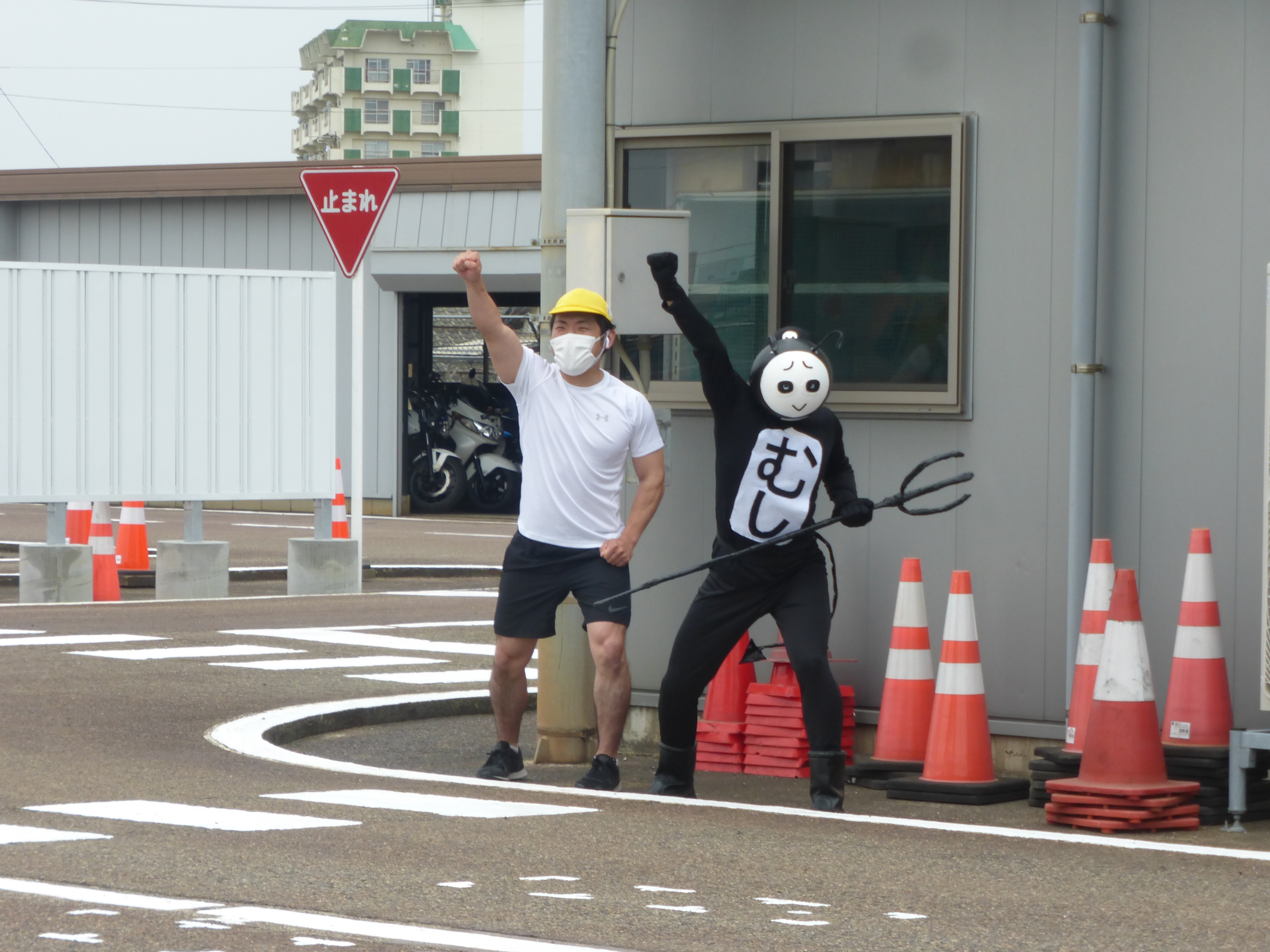 また、新潟県警から来たむっしー君が、楽しく交通安全の指導をしてくれました。