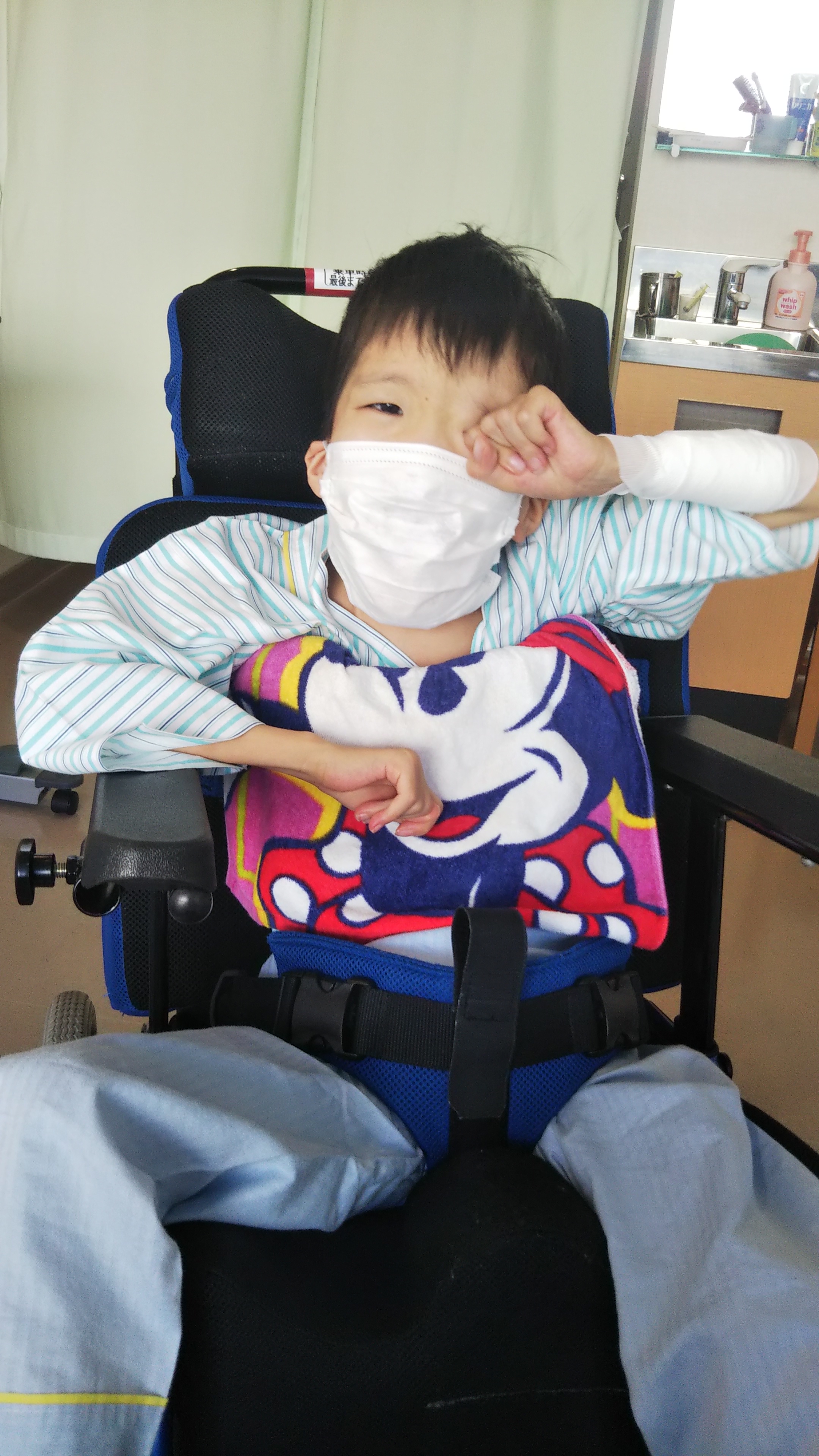 まだ何本か管が残っているので引っ張らないようにとドラえもん仕様に(笑)