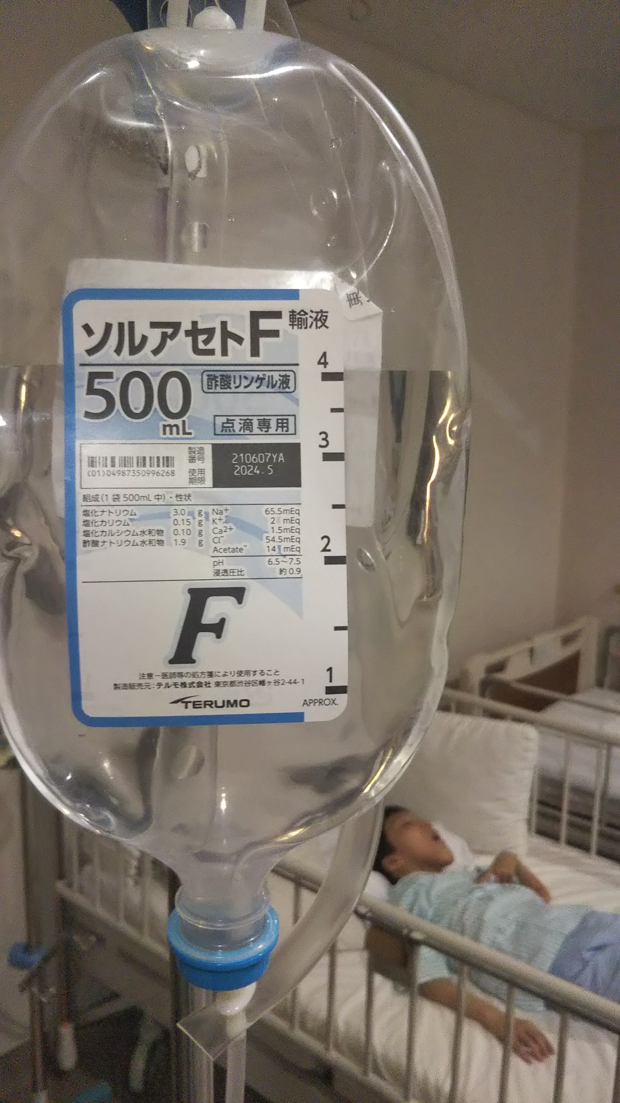 左手にも点滴を刺して「眠くなる薬入れますよ~」とスタッフさん。