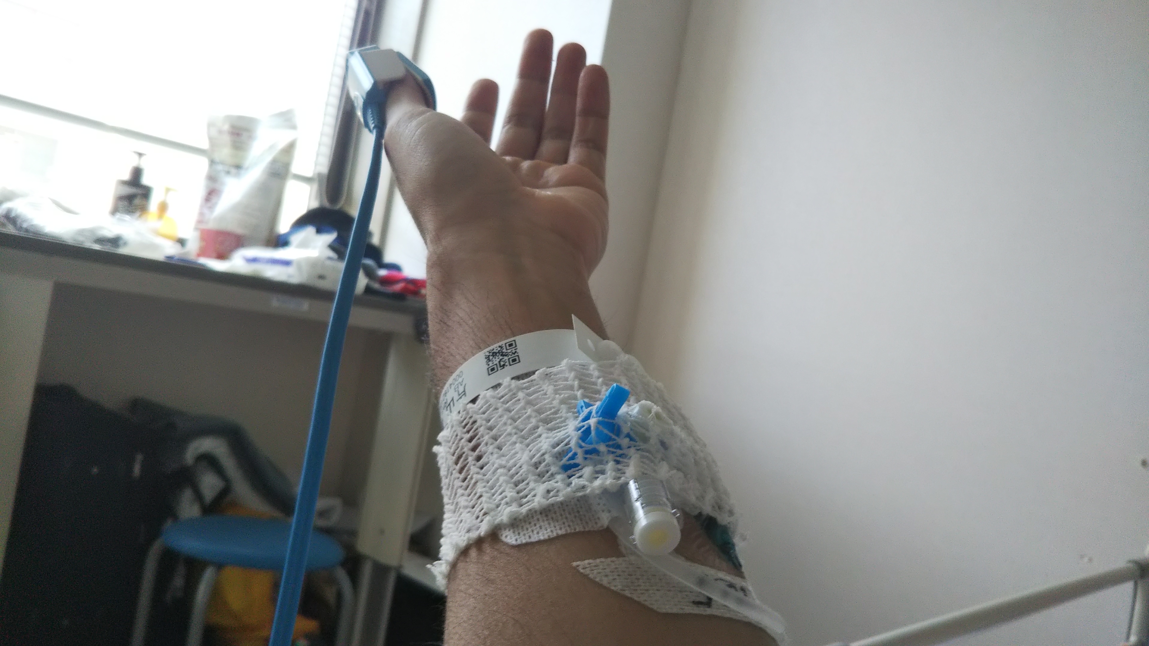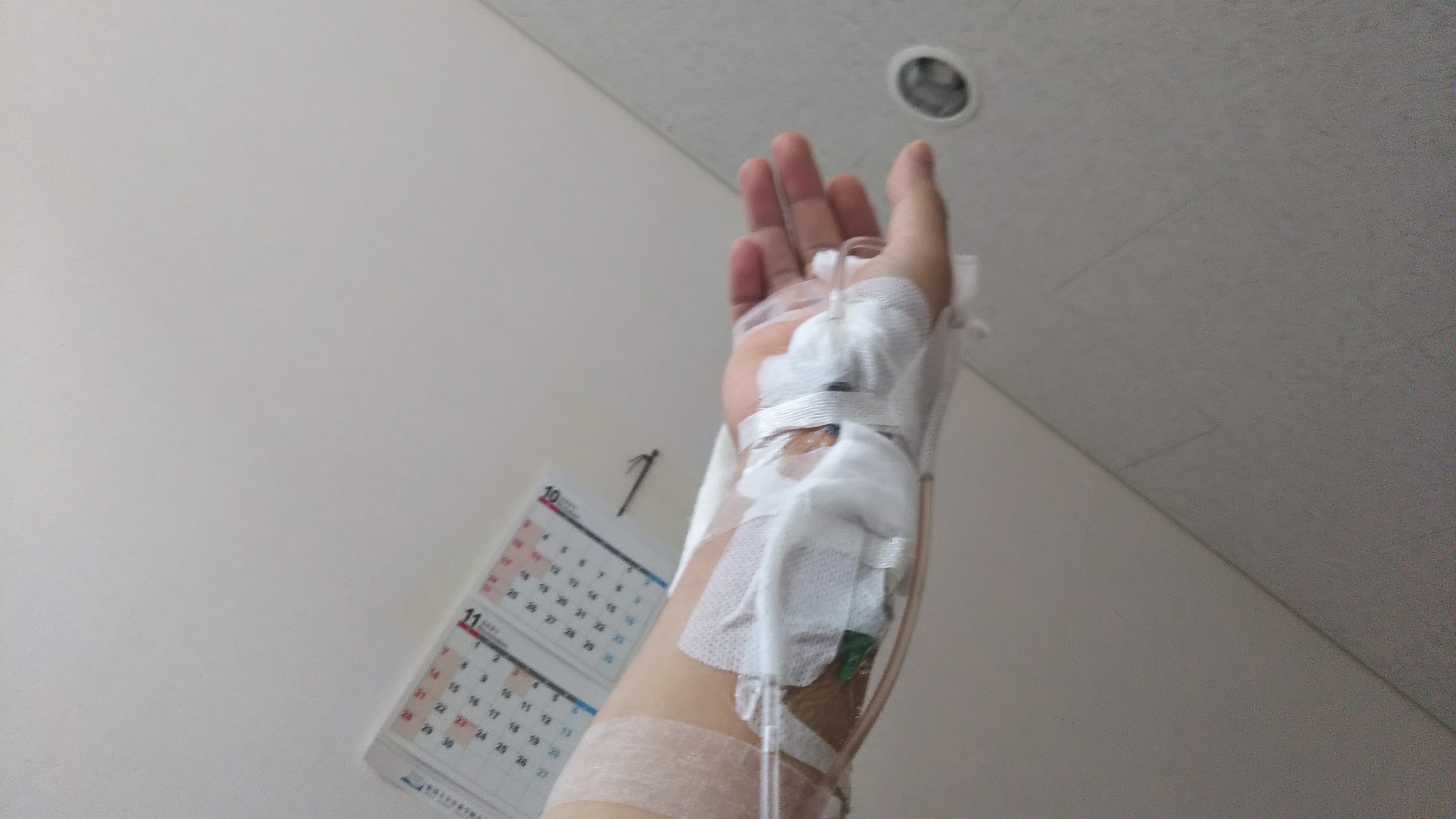 右腕の点滴が外されました。(右手に二本あった点滴のひとつは動脈注射だったから入っている間ずっとそこそこ痛かった)