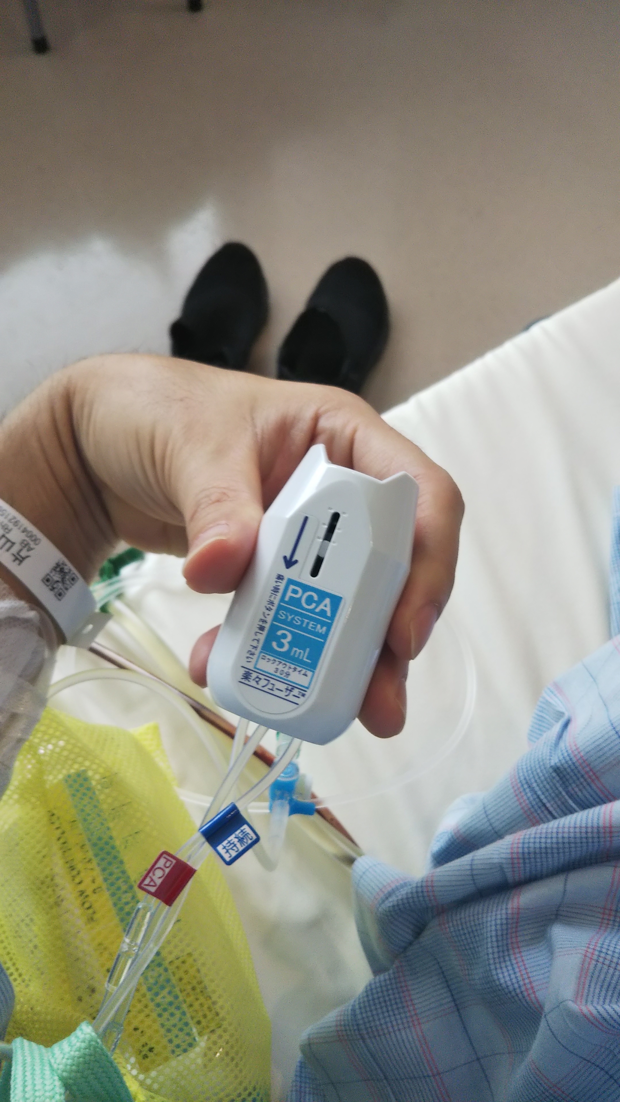 そんなときは痛み止めスイッチオン!(写真有り)冷たい液体が手術の時から背中に入ったままの管を通って直接身体に入っていき数秒で痛みが退きます。