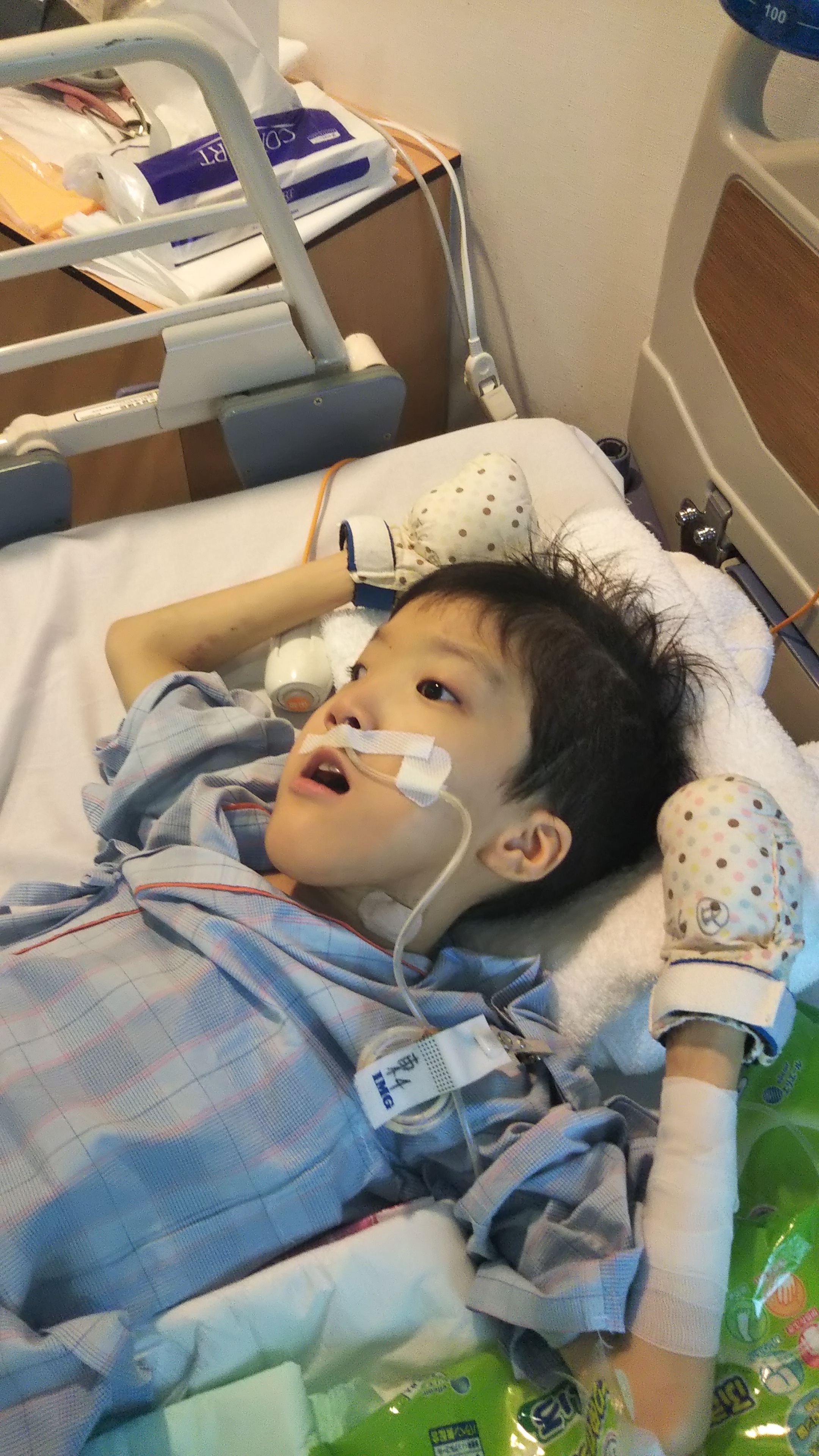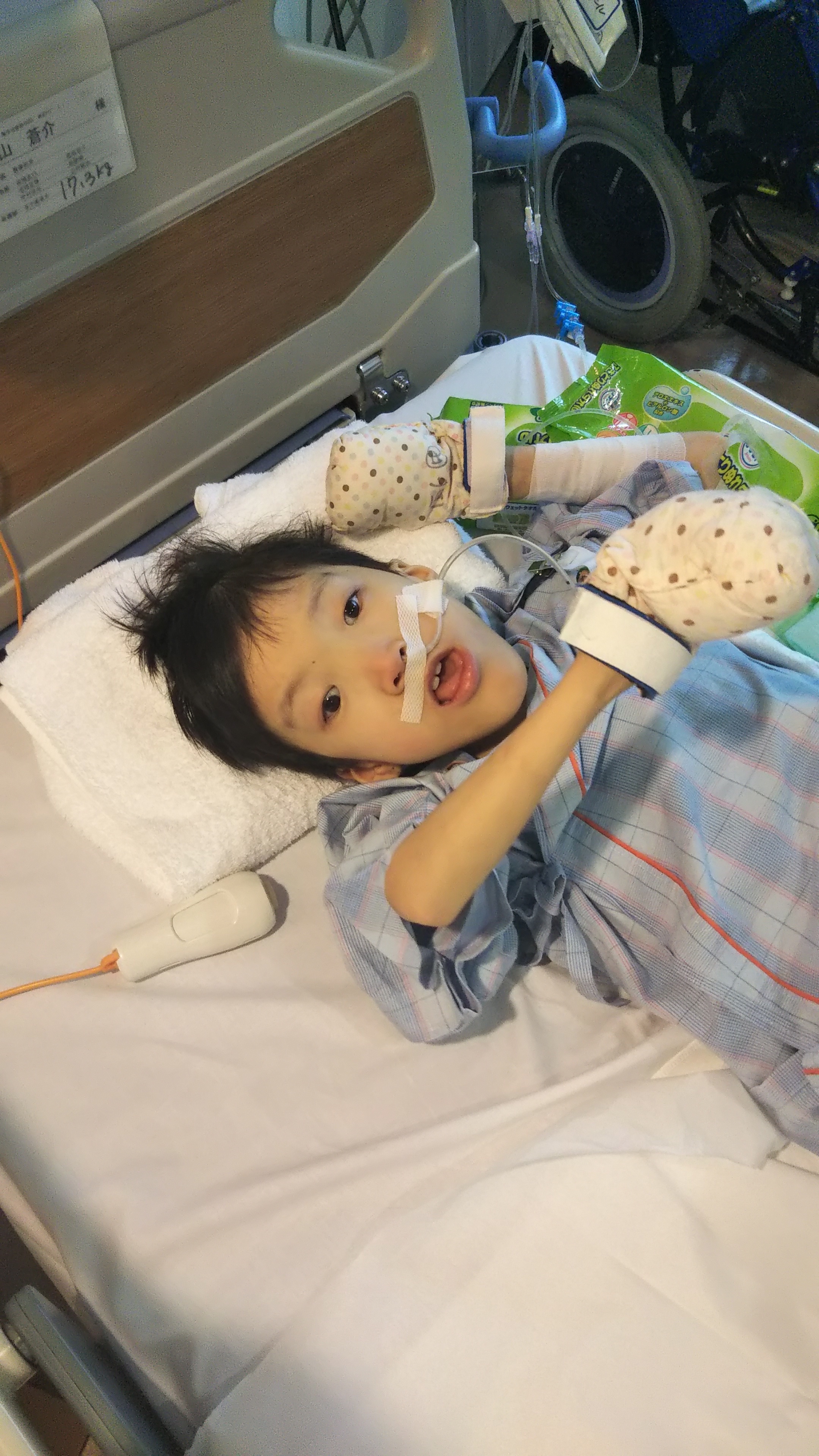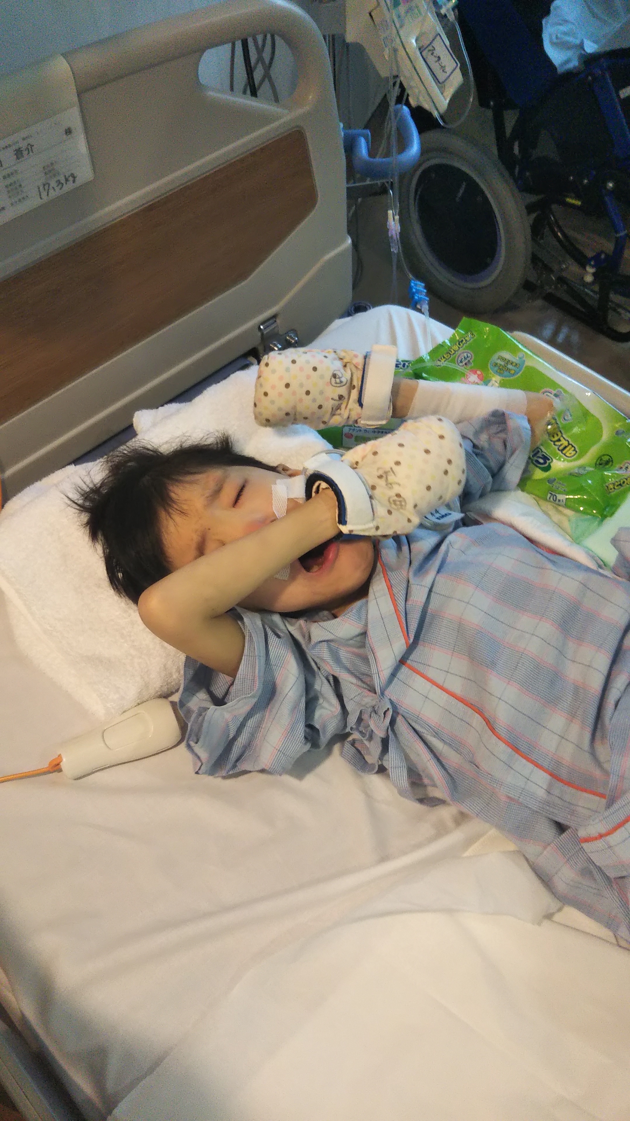おちん○んのカテーテルは最初から痛くて、ずっとオムツに点々と血が付いてたし、、、よく見たらカテーテルがささってたところ、尿道?ちょっと裂けてるやん!?そこから血つたってるやん!?