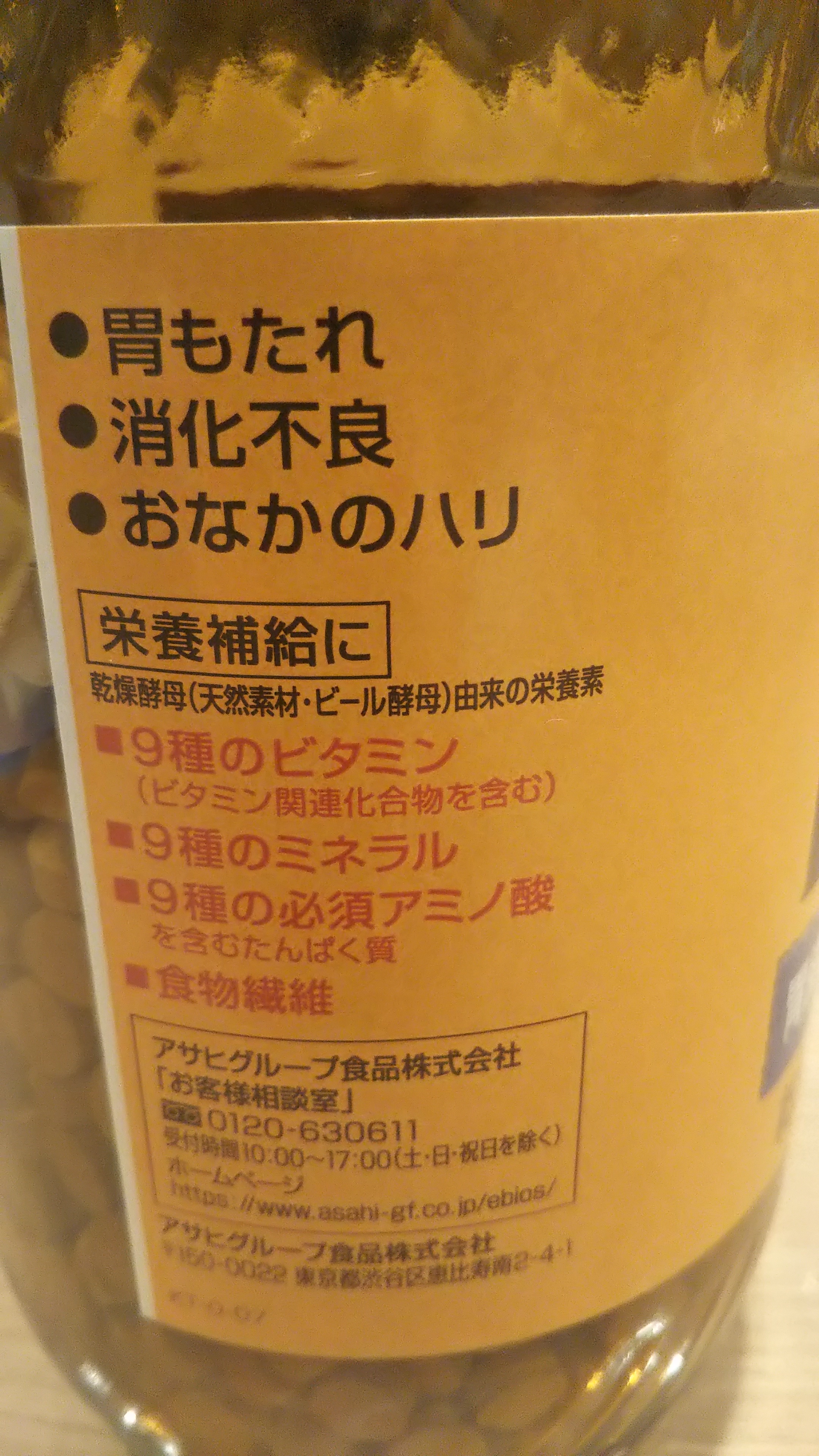 こちらは仲村トオルがCMしてたやつです。ビール酵母由来のいろいろなビタミンやミネラル、必須アミノ酸が含まれていてなんか身体に良さそう。(私はビール全く飲めませんが、、、大丈夫なのか??)