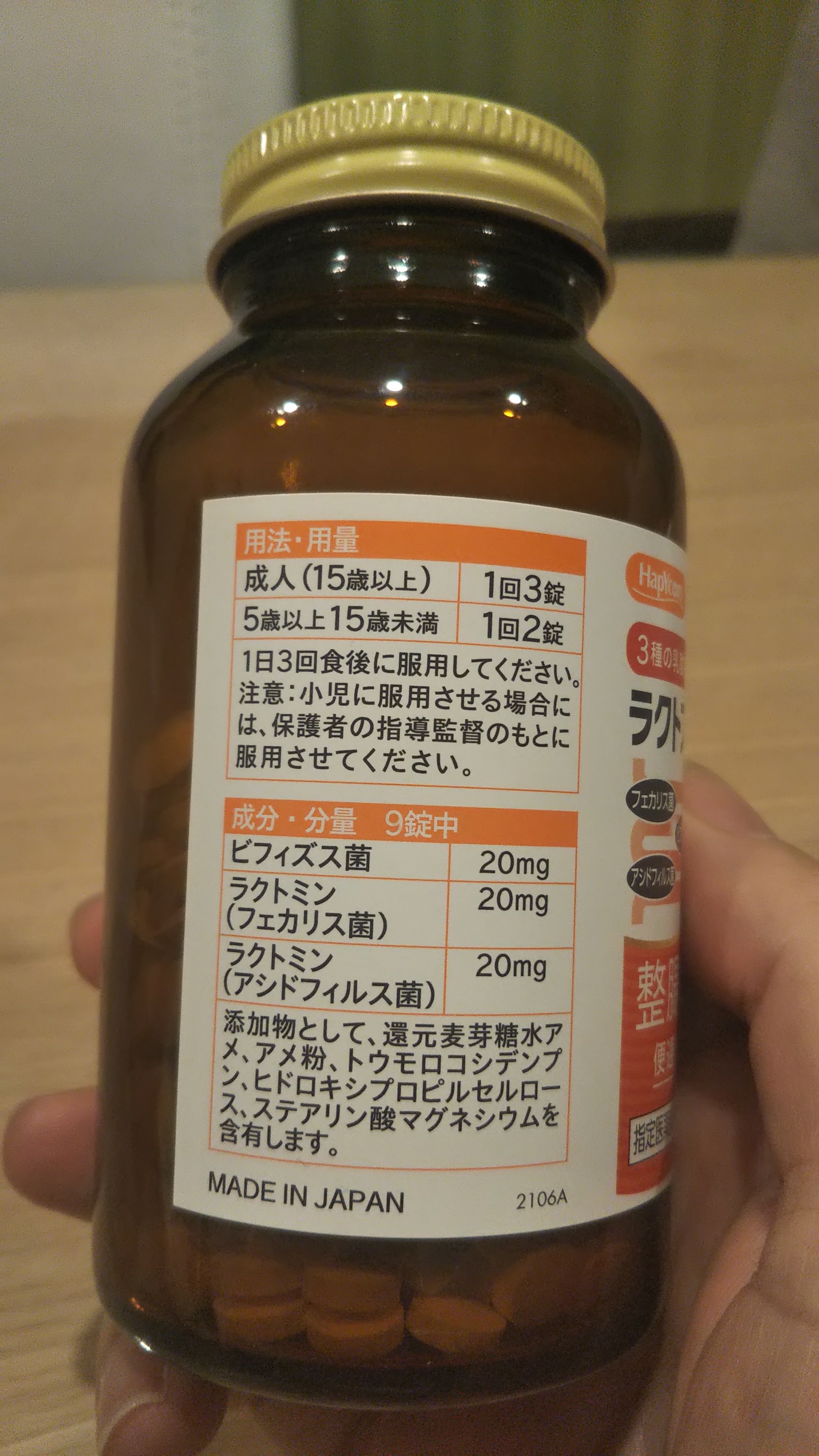 ラクトファルミンは一回3錠。エビオスは10錠。